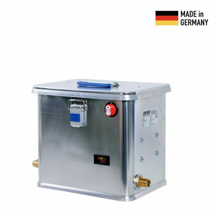 The portable TBW battery pump unit enables quiet and emission-free irrigation. The practical aluminium case can be easily integrated into existing systems. An electronic pressure regulator optimises power consumption to the required output.