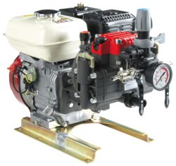 Powerful motor pump for mounting on cart sprayers or other spraying equipment.