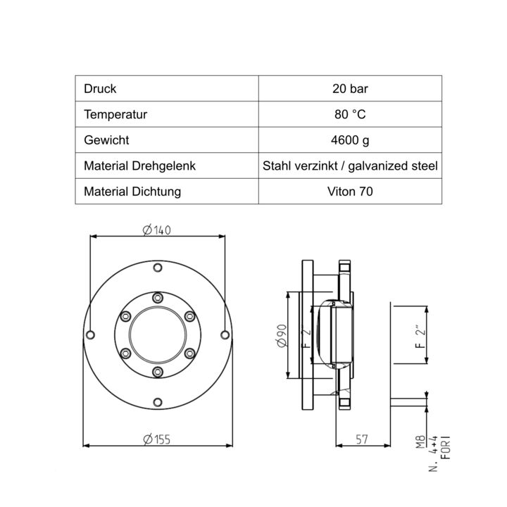 Galvanized steel, 2'' F - 2'' F, max. 20bar/90°C, galvanized steel, integrated in bearing, Viton seal