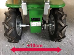 Improves the stability of the electric wheelbarrow, especially on very uneven terrain. External width of the tires series 40cm with widening 50cm, suitable for Donkey Plus
