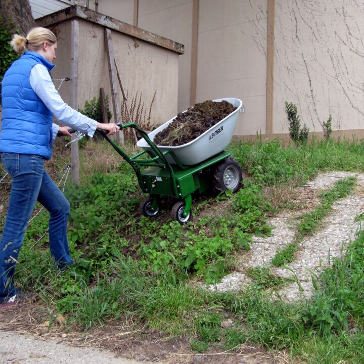 The Donkey Plus is a robust electric wheelbarrow for private and hobby applications or in the horse industry.