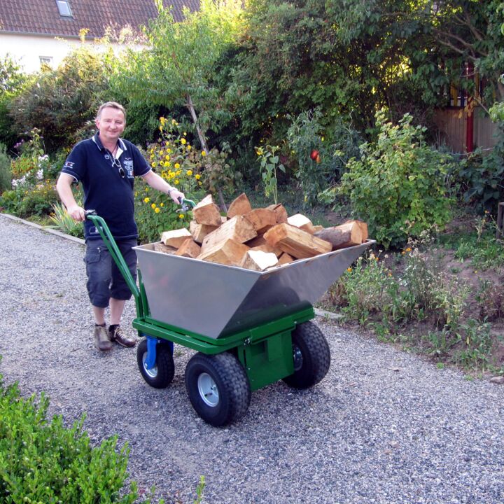 The Donkey XL-H is a robust electric wheelbarrow for transporting heavy loads. The 4-wheel design facilitates work in agriculture, on construction sites or in the municipal sector.