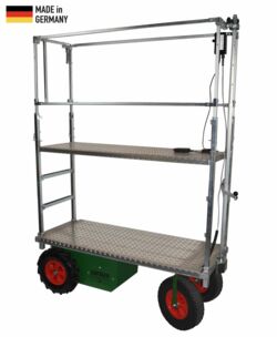 Our electric working platforms are designed for use in greenhouses. Whether for use on unpaved surfaces or for travelling on