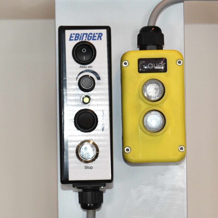 The 24V geared motor guarantees a constant speed thanks to a control system. All operating functions can be controlled via the control unit on the handrail. A foot pedal also enables simple on/off switching. One battery charge lasts for approx. 8-10 hours.
