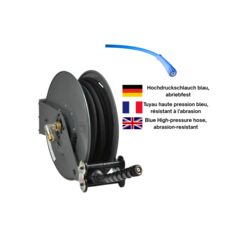 Painted steel housing - Spring return & hose lock - High-pressure hose, blue, abrasion-resistant