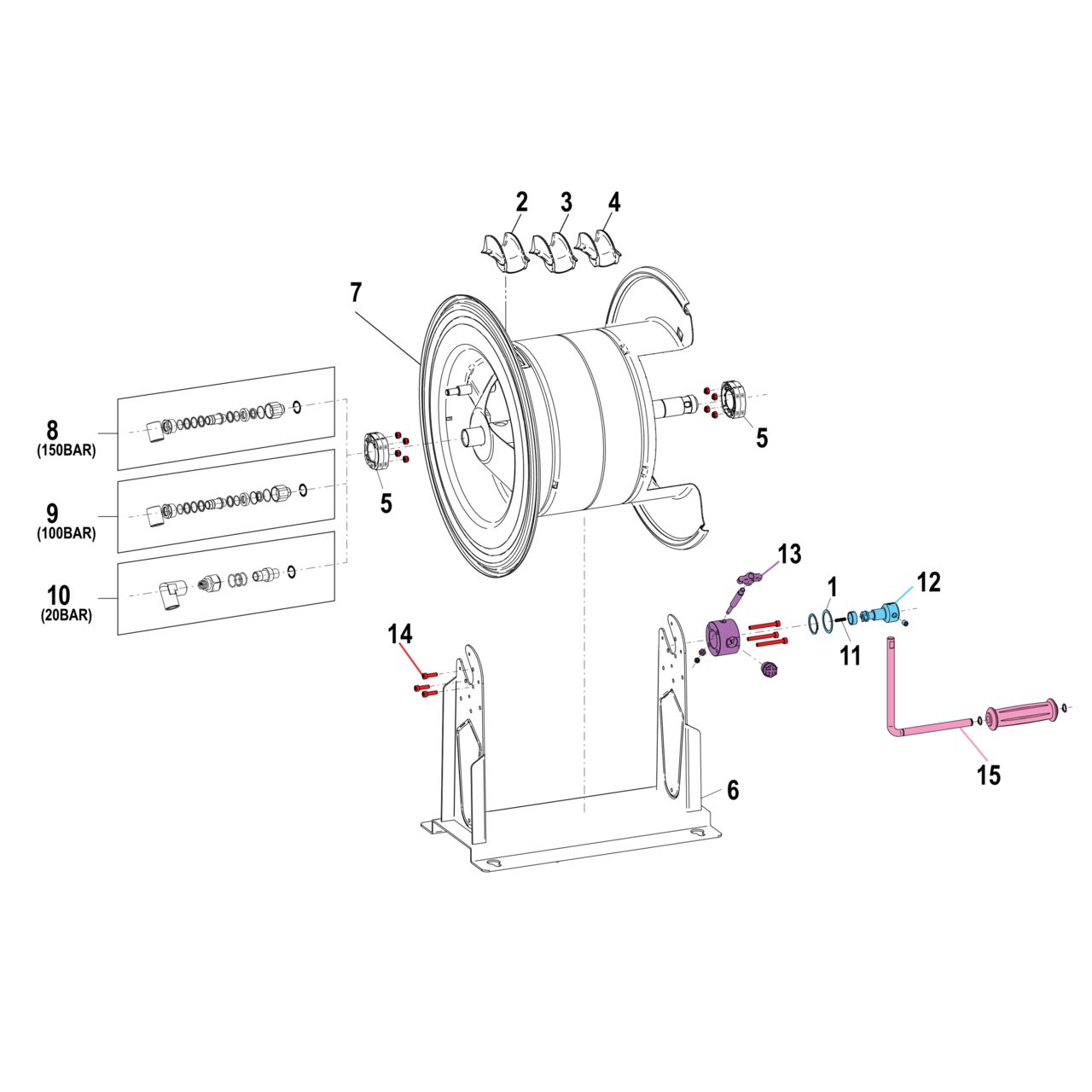 • adjustable return brake prevents the reel from rolling when the hose is pulled out