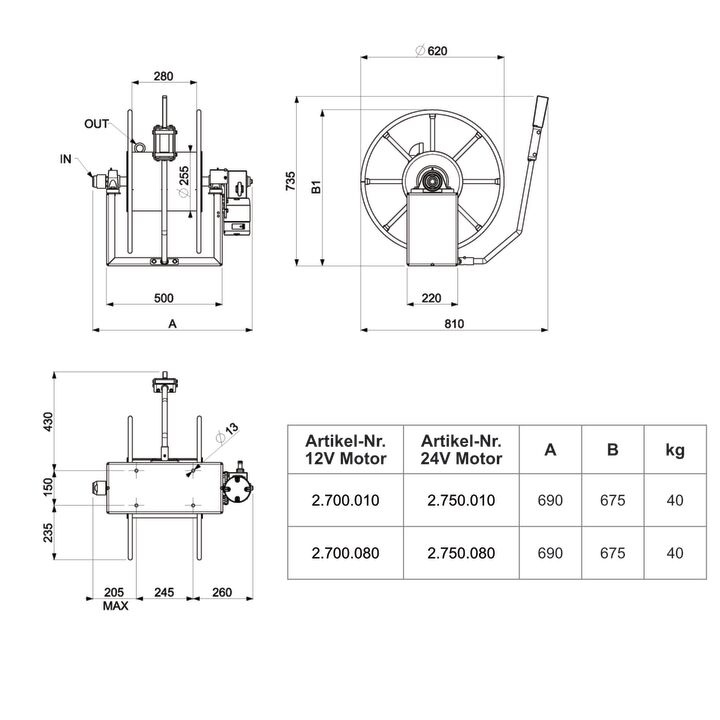 • battery 24V, mounted on hose reel for autonomous use incl. charger