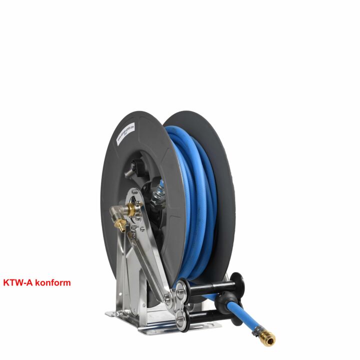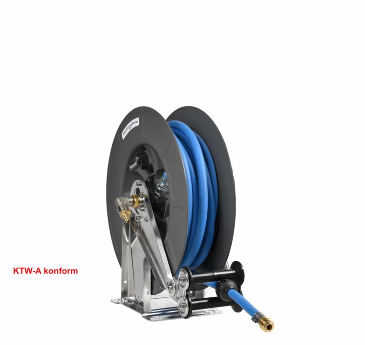 A (more cost-effective) alternative to hose reels made entirely of stainless steel is the OSK series hose reel made of ABS plastic and stainless steel. All parts that come into contact with water are made of stainless steel, which is why they can also be used for drinking water applications.