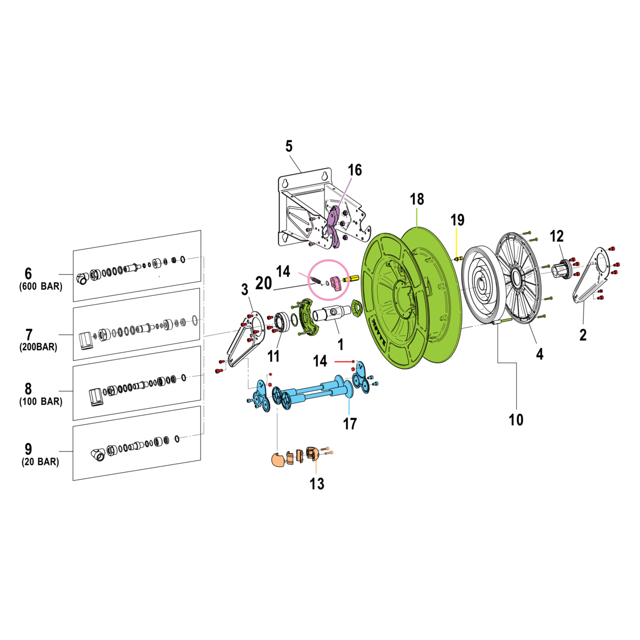 Our hose reels with spring return are specially designed for professional and industrial use. High-quality components and a wide range of accessories allow them to be adapted to all work areas and applications. With a robust and precise design, they offer a durable, reliable solution for a wide range of requirements.