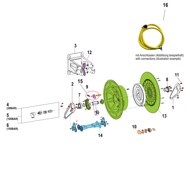 Our hose reels with spring return are specially designed for professional and industrial use. High-quality components and a wide range of accessories allow them to be adapted to all work areas and applications. With a robust and precise design, they offer a durable, reliable solution for a wide range of requirements.