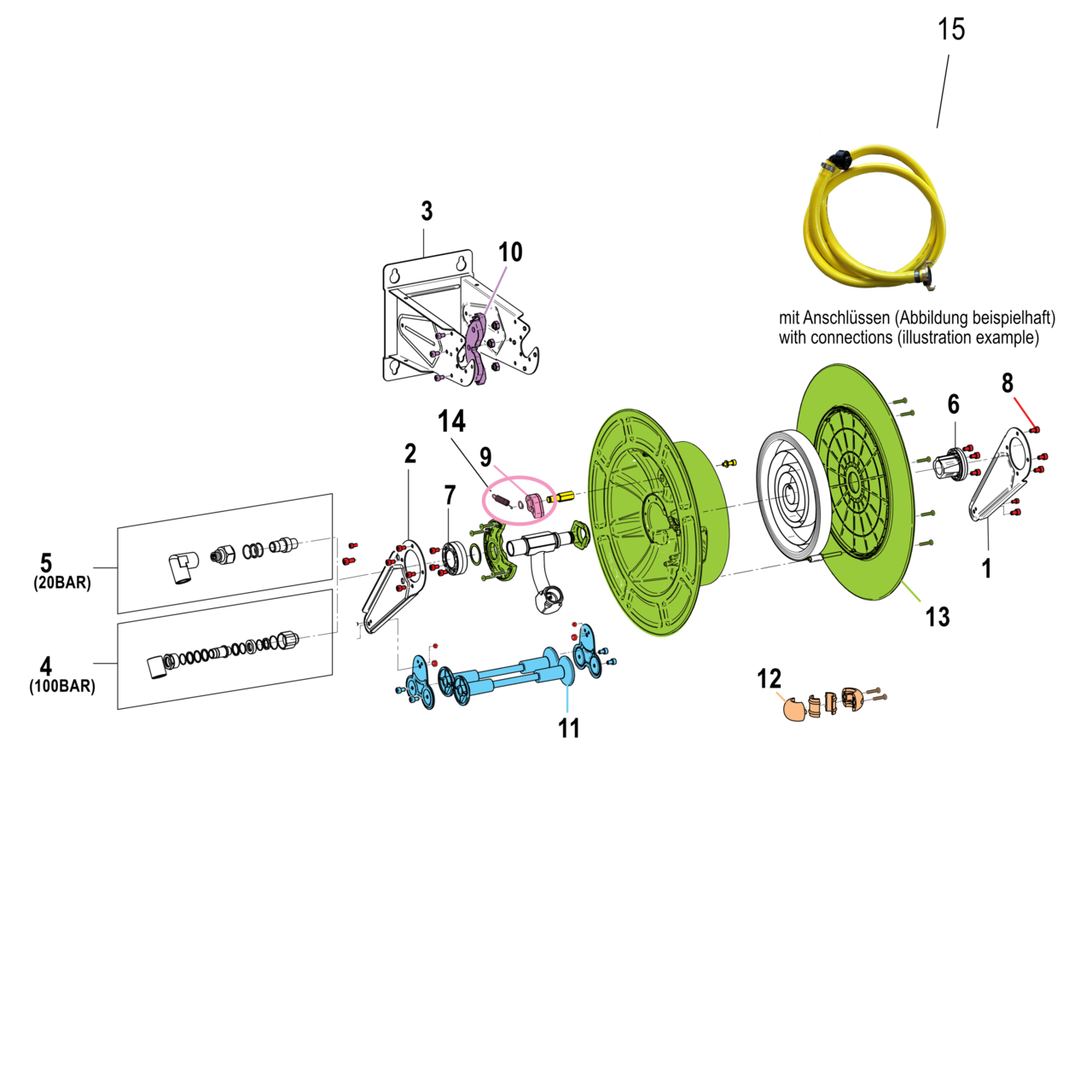 Our hose reels with spring return are specially designed for professional and industrial use. High-quality components and a wide range of accessories allow them to be adapted to all work areas and applications. With a robust and precise design, they offer a durable, reliable solution for a wide range of requirements.