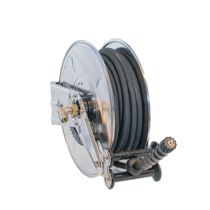 Our hose reels with spring return are specially designed for professional and industrial use. High-quality components and a wide range of accessories enable adaptation to all work areas and applications. With a robust and precise design, they offer a long-lasting, reliable solution for a wide range of requirements.