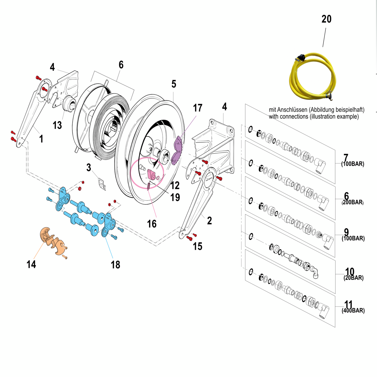 Our hose reels with spring return are specially designed for professional and industrial use. High-quality components and a wide range of accessories enable adaptation to all work areas and applications. With a robust and precise design, they offer a long-lasting, reliable solution for a wide range of requirements.