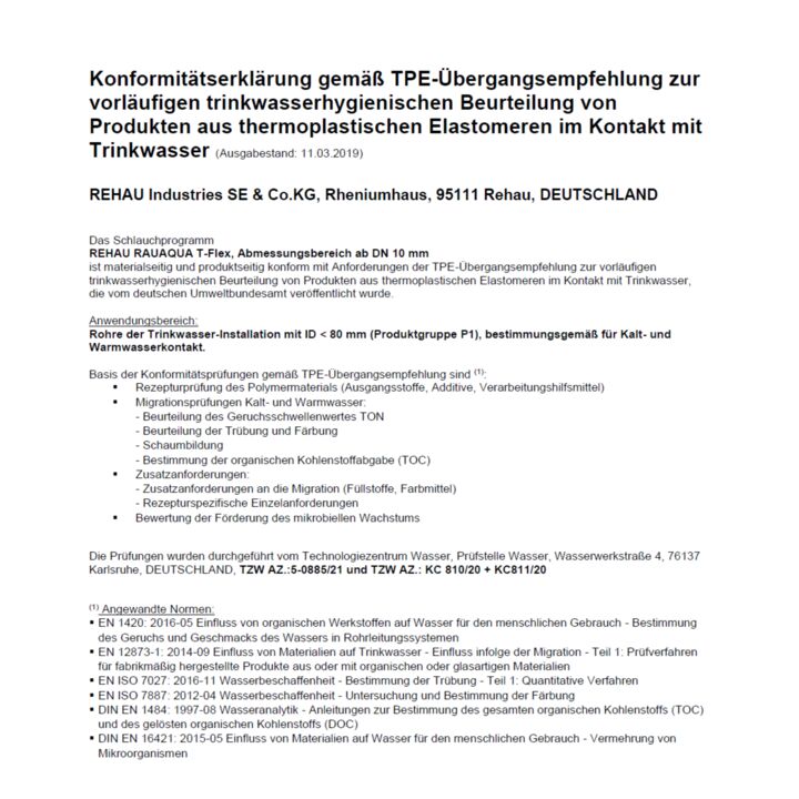 These are the European assessment criteria that determine which plastics are suitable for contact with drinking water.