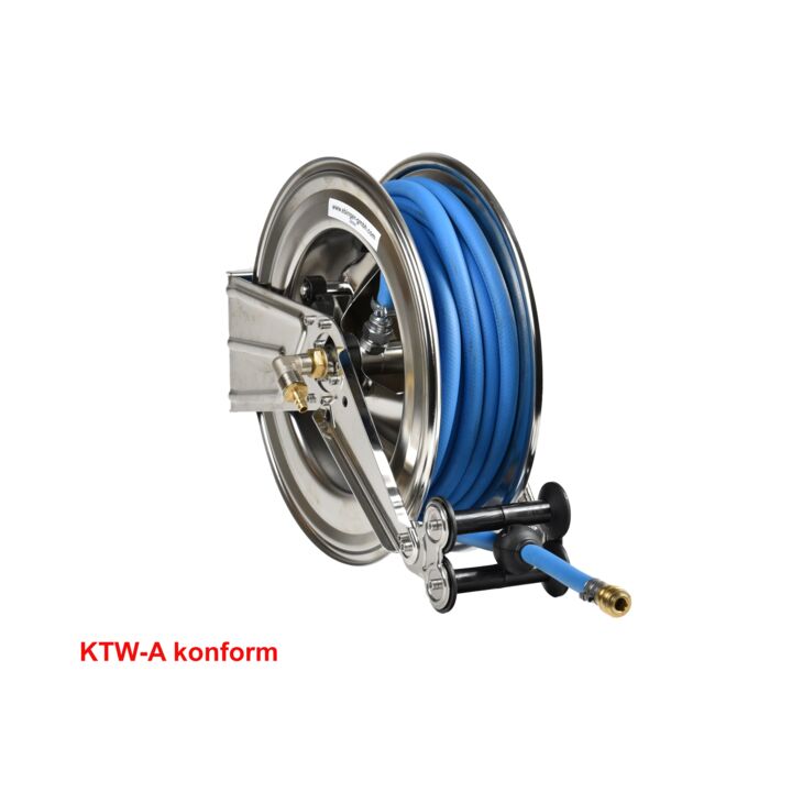 A (more cost-effective) alternative to hose reels made entirely of stainless steel is the OSK series hose reel made of ABS plastic and stainless steel. All parts that come into contact with water are made of stainless steel, which is why they can also be used for drinking water applications.