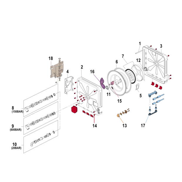 The OSM 420 automatic hose reel is characterised by a robust, closed housing made of painted steel. This means that all internal components are specially protected and are used in the automotive industry, mining, construction, road building and rail transport.