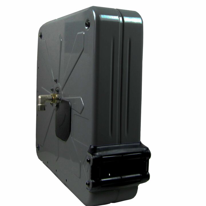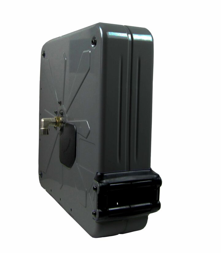 The OSM 420 automatic hose reel is characterised by a robust, closed housing made of painted steel. This means that all internal components are specially protected and are used in the automotive industry, mining, construction, road building and rail transport.