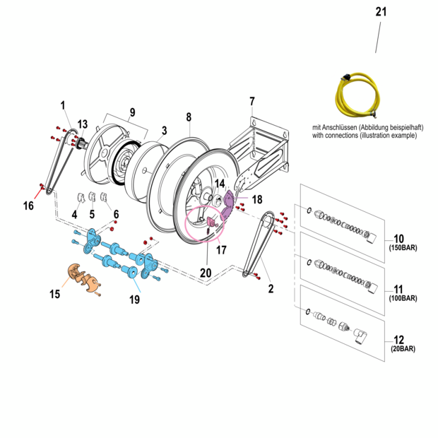 Our hose reels with spring return are specially designed for professional and industrial use. High-quality components and a wide range of accessories enable adaptation to all work areas and applications. With a robust and precise design, they offer a long-lasting, reliable solution for a wide range of requirements.