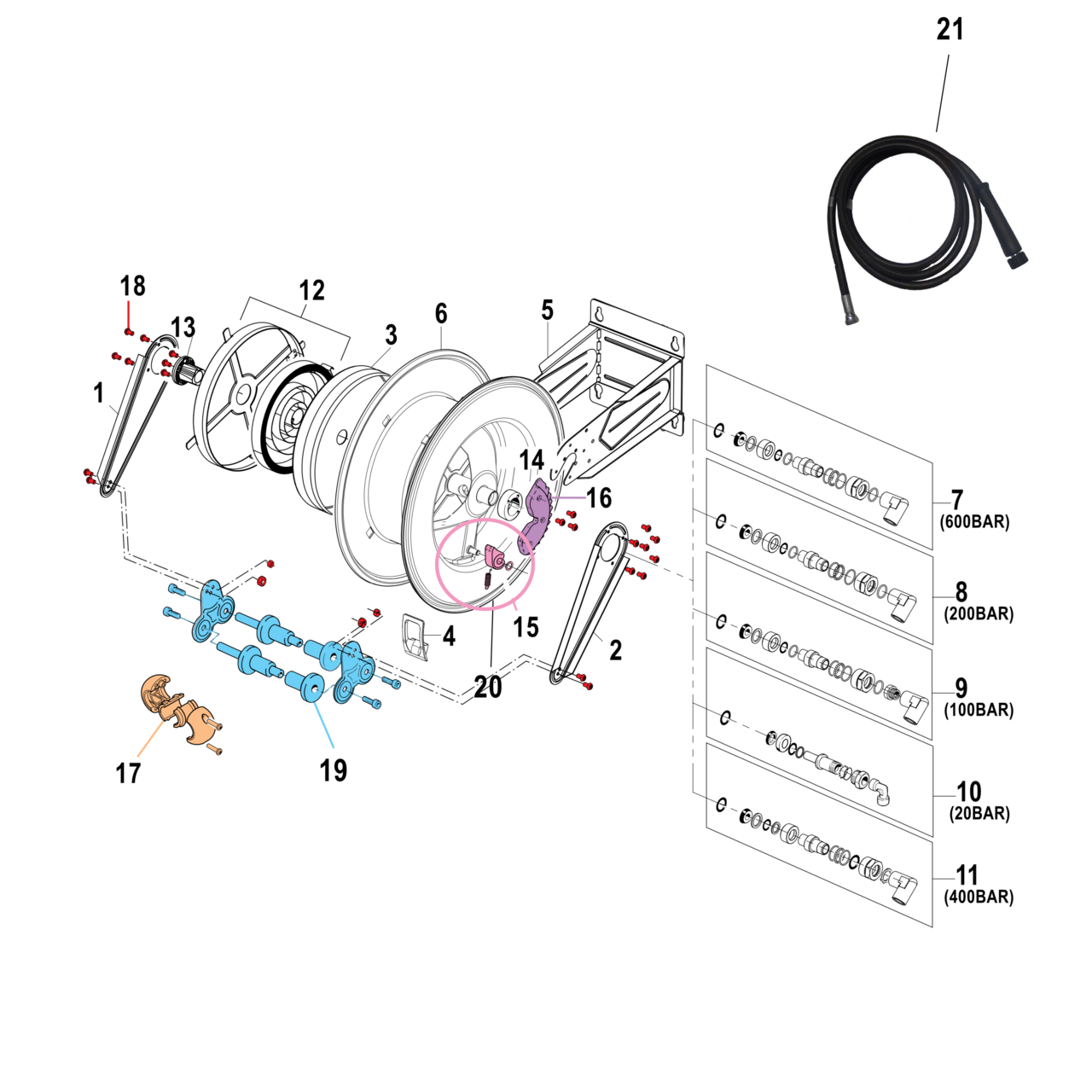 Our hose reels with spring return are specially designed for professional and industrial use. High-quality components and a wide range of accessories enable adaptation to all work areas and applications. With a robust and precise design, they offer a long-lasting, reliable solution for a wide range of requirements.