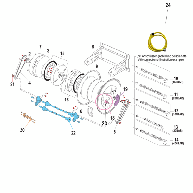Our hose reels with spring return are specially designed for professional and industrial use. High-quality components and a wide range of accessories enable adaptation to all work areas and applications. With a robust and precise design, they offer a long-lasting, reliable solution for a wide range of requirements.