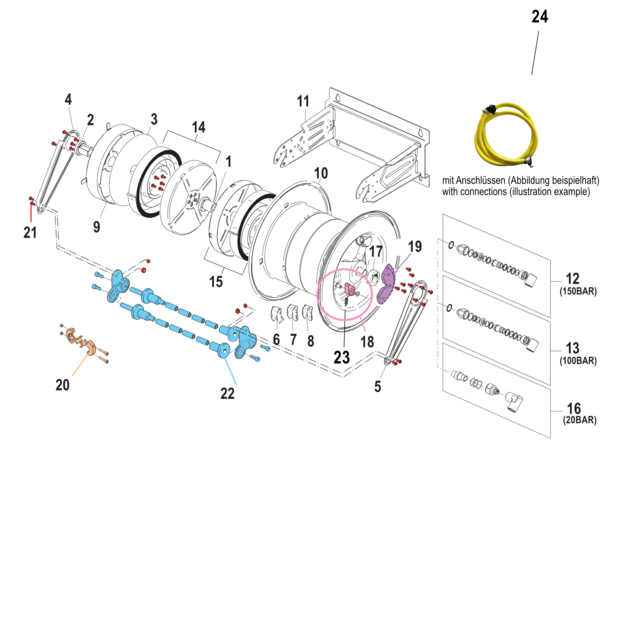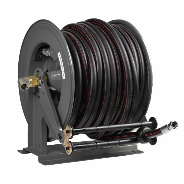 Our hose reels with spring return are specially designed for professional and industrial use. High-quality components and a wide range of accessories enable adaptation to all work areas and applications. With a robust and precise design, they offer a long-lasting, reliable solution for a wide range of requirements.