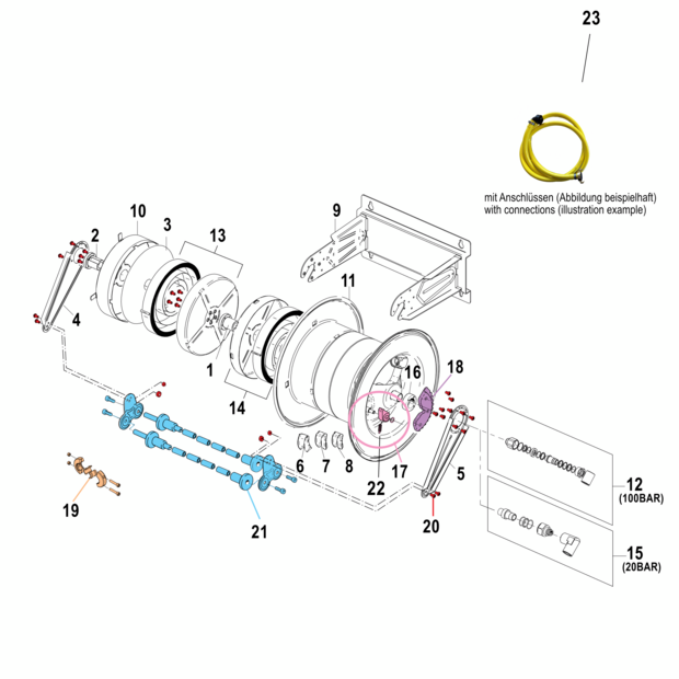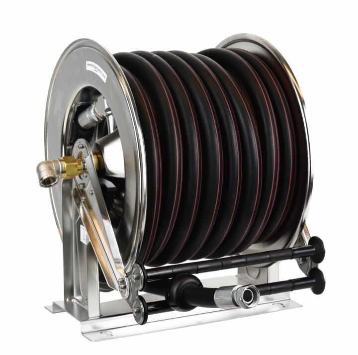 Our hose reels with spring return are specially designed for professional and industrial use. High-quality components and a wide range of accessories enable adaptation to all work areas and applications. With a robust and precise design, they offer a long-lasting, reliable solution for a wide range of requirements.