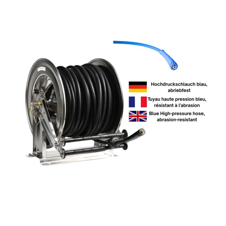 Our hose reels with spring return are specially designed for professional and industrial use. High-quality components and a wide range of accessories enable adaptation to all work areas and applications. With a robust and precise design, they offer a long-lasting, reliable solution for a wide range of requirements.