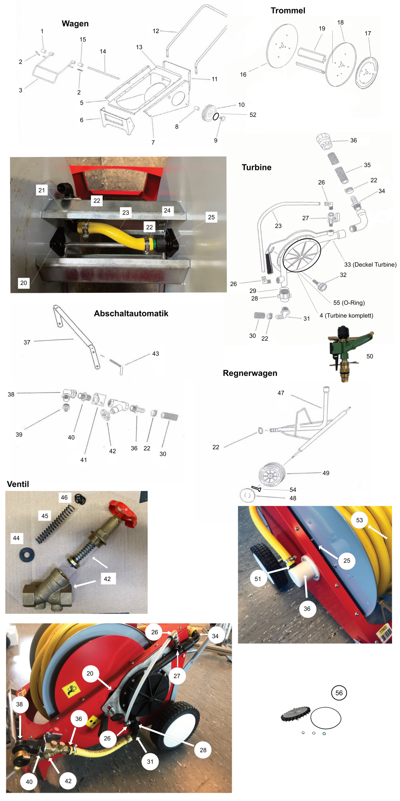 It should also be ensured that the pipe is not blocked by dirt or foreign objects. To do this, check the turbine at the turbine inlet, the hose connection, the sprinkler cart and the sector sprinkler, e.g. by unscrewing the nozzles.