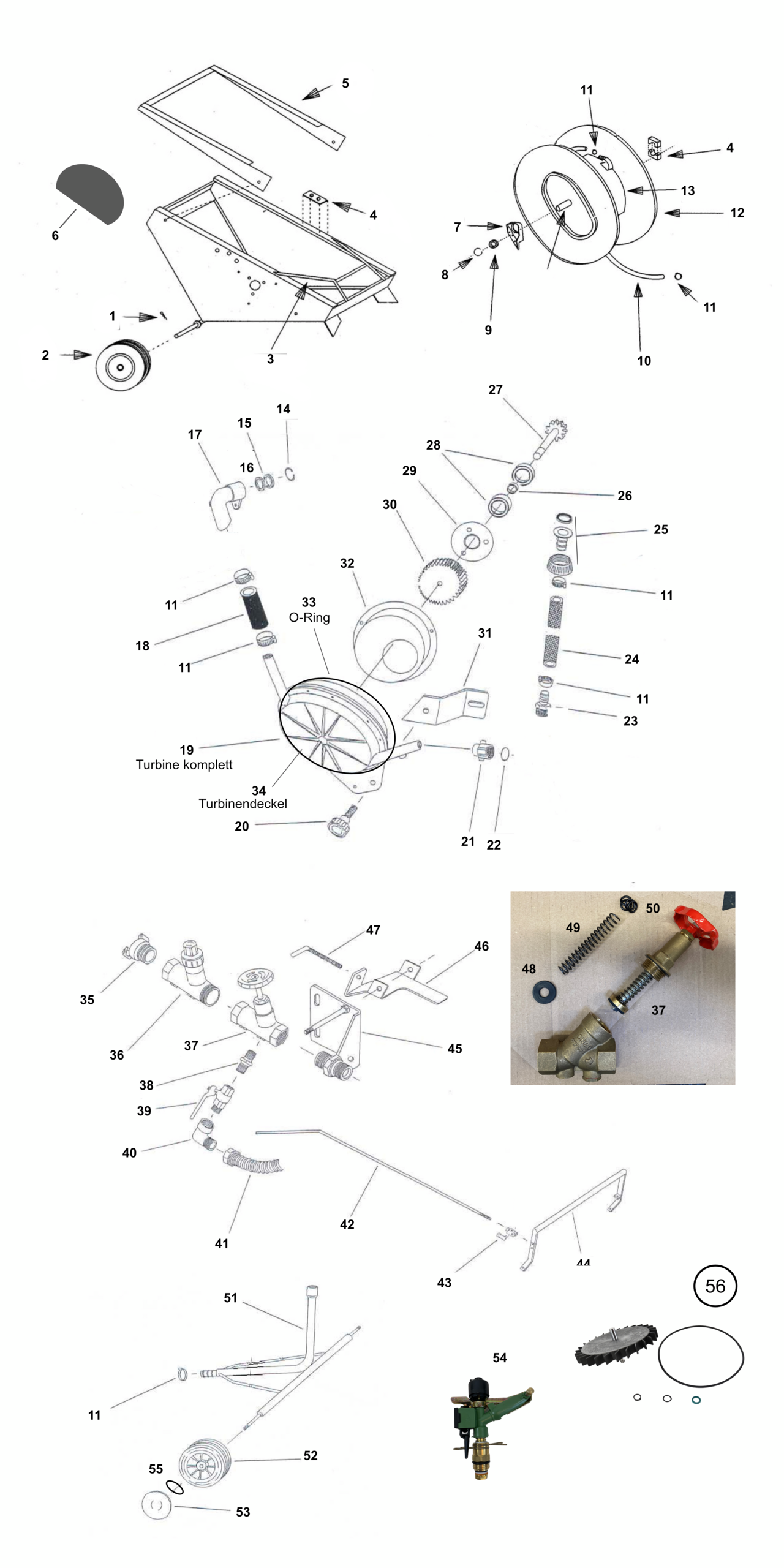 It should also be ensured that the pipe is not blocked by dirt or foreign objects. To do this, check the turbine at the turbine inlet, the hose connection, the sprinkler cart and the sector sprinkler, e.g. by unscrewing the nozzles.