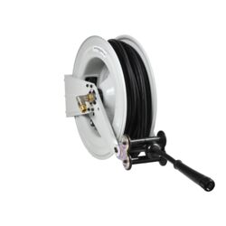 Painted steel housing - spring return & hose lock Hose Capacity: 20m - 1/2" (18mm OD), 15m 5/8" (21mm OD)