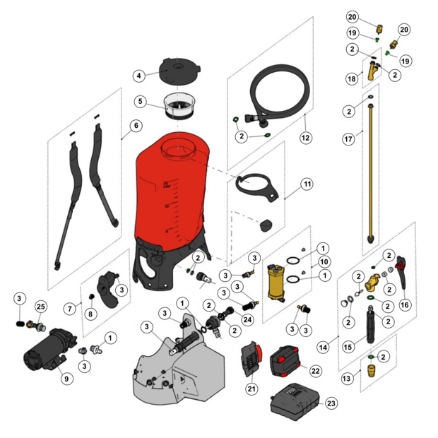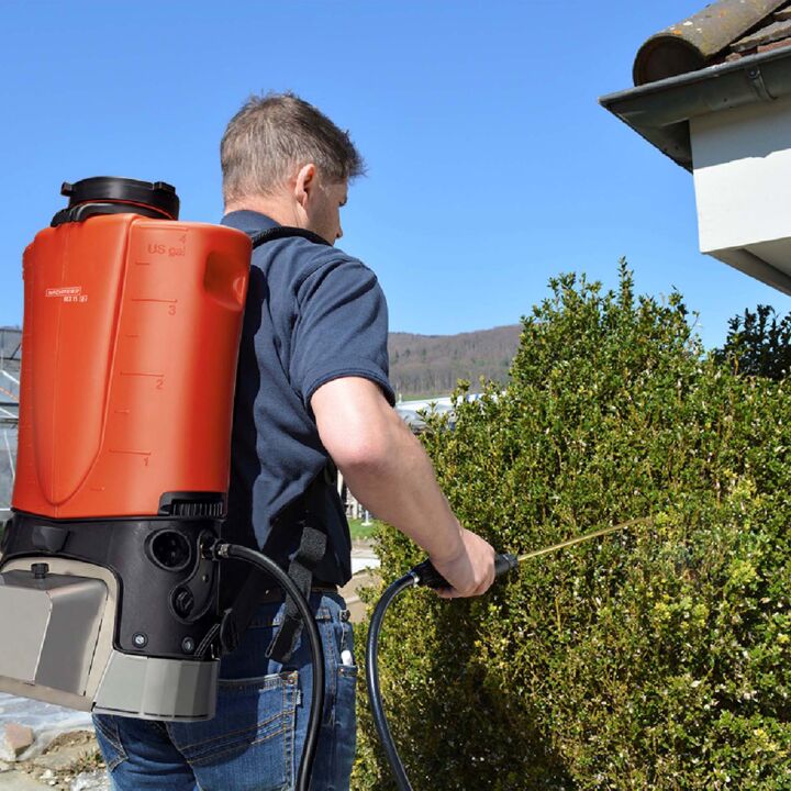 Backpack sprayer with electric motor as an alternative to“The REX 15 AC1 battery-powered backpack sprayer is the perfect alternative to petrol-powered devices and offers an environmentally friendly, powerful solution for professional use. Thanks to the electric motor, there are no exhaust fumes and no noise pollution, making it ideal for use indoors, in parks and other sensitive areas.