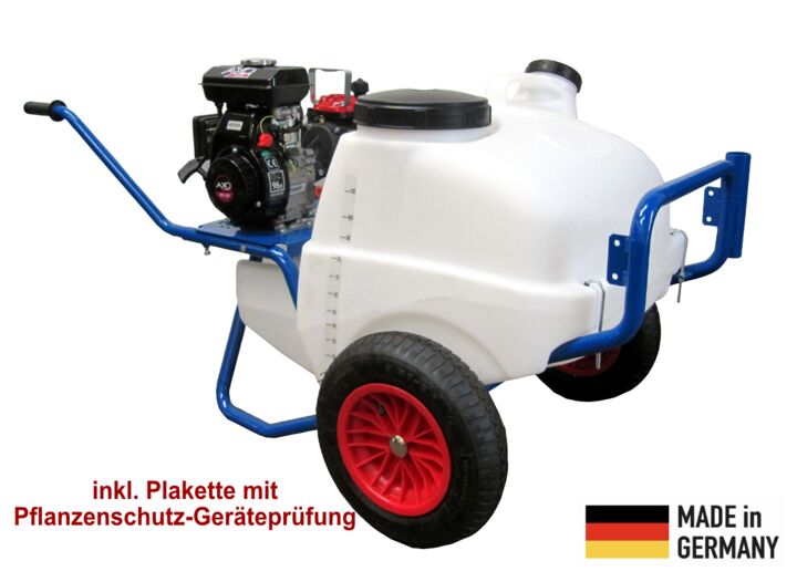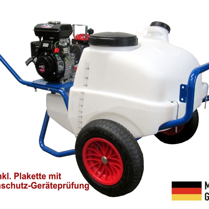 Thanks to the optimum position of the wheels in relation to the tank, the cart sprayer can be easily pushed even when the tank is full. It is equipped with a petrol or electric motor with a powerful diaphragm pump, which is suitable for all common plant protection products.