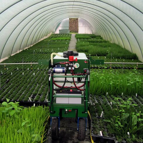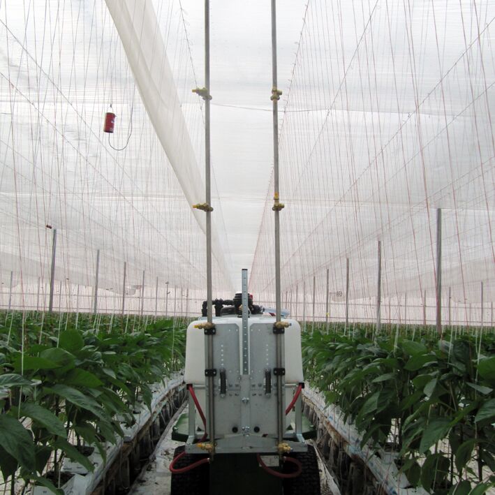 Thanks to the electric locomotion and the possibility of a constant speed when spraying the crop protection agent, extremely precise application over a wide area can be achieved.